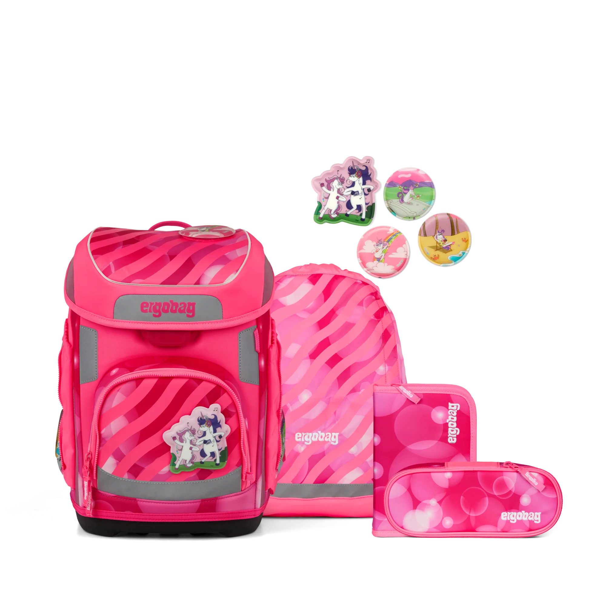 5 -teiliges Set, höhenverstellbares Tragesystem “Your-Size-System”, hoher Tragekomfort durch breite, gepolsterte Beckenflossen, gute Sichtbarkeit durch Reflektoren rundherum, fest angenähte Seitentaschen, Loop zum Anbringen von Hangies, Fahrkartenfach am Beckengurt, Kinderleichtes Öffnen und Schließen des Klappdeckels, Individualisierbar durch Kletties, Hangies, Zippies und Zip-Sets, Größe: 28 x 40 x 25 cm (B/H/T), Gewicht 1100 g, Volumen 19 Liter, Hauptstoff 100% Polyester, aus 39 recycelten PET-Flaschen (0,5 l), Wasser- und schmutzabweisend, Pflegehinweise: Nicht waschen, nicht bleichen, nicht im Trockner trocknen, nicht bügeln, nicht trockenreinigen