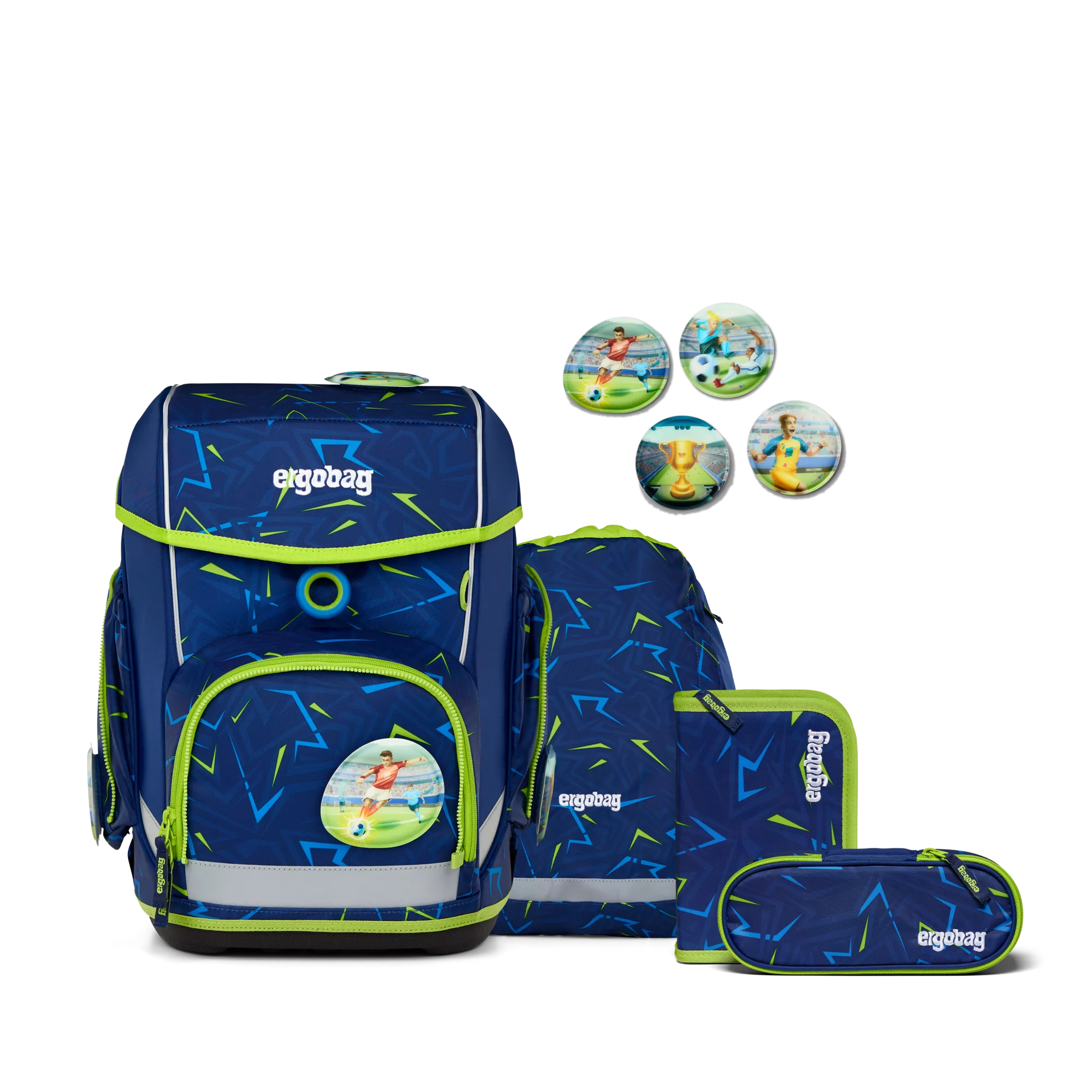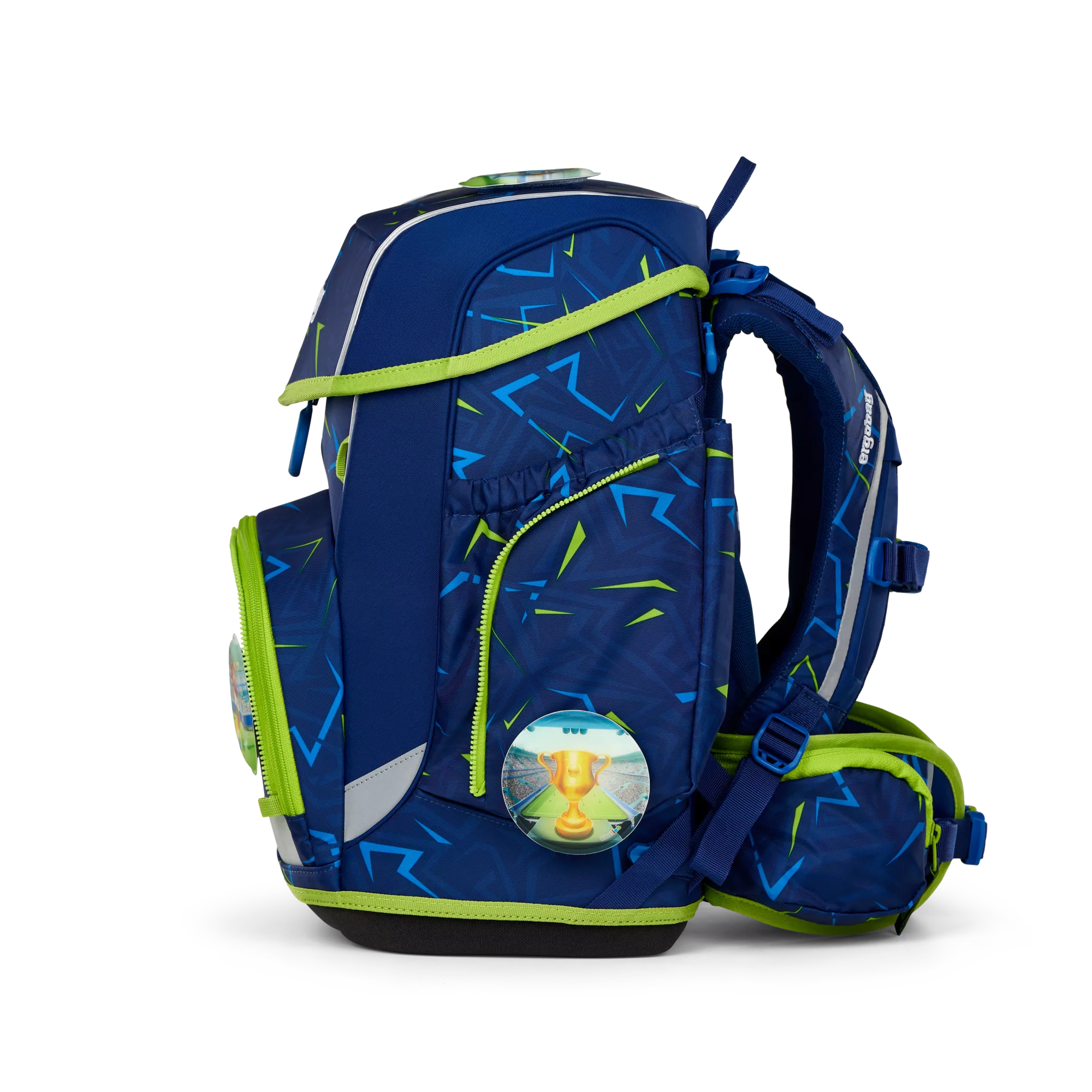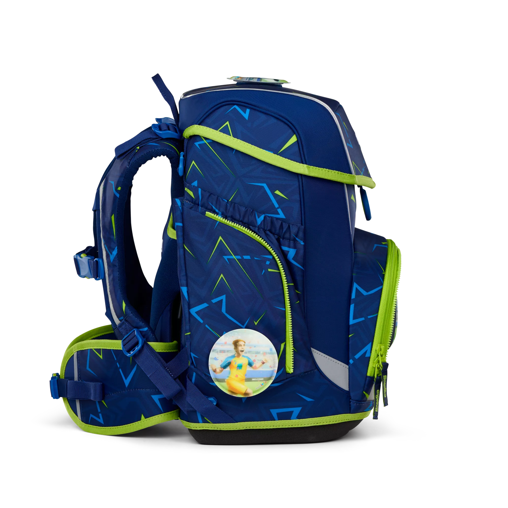 5 -teiliges Set, höhenverstellbares Tragesystem „Your-Size-System“, hoher Tragekomfort durch breite, gepolsterte Beckenflossen, gute Sichtbarkeit durch Reflektoren rundherum, fest angenähte Seitentaschen, Loop zum Anbringen von Hangies, Fahrkartenfach am Beckengurt, Kinderleichtes Öffnen und Schließen des Klappdeckels, Individualisierbar durch Kletties, Hangies, Zippies und Zip-Sets, Größe: 28 x 40 x 25 cm (B/H/T), Gewicht 1100 g, Volumen 19 Liter, Hauptstoff 100% Polyester, aus 39 recycelten PET-Flaschen (0,5 l), Wasser- und schmutzabweisend, Pflegehinweise: Nicht waschen, nicht bleichen, nicht im Trockner trocknen, nicht bügeln, nicht trockenreinigen