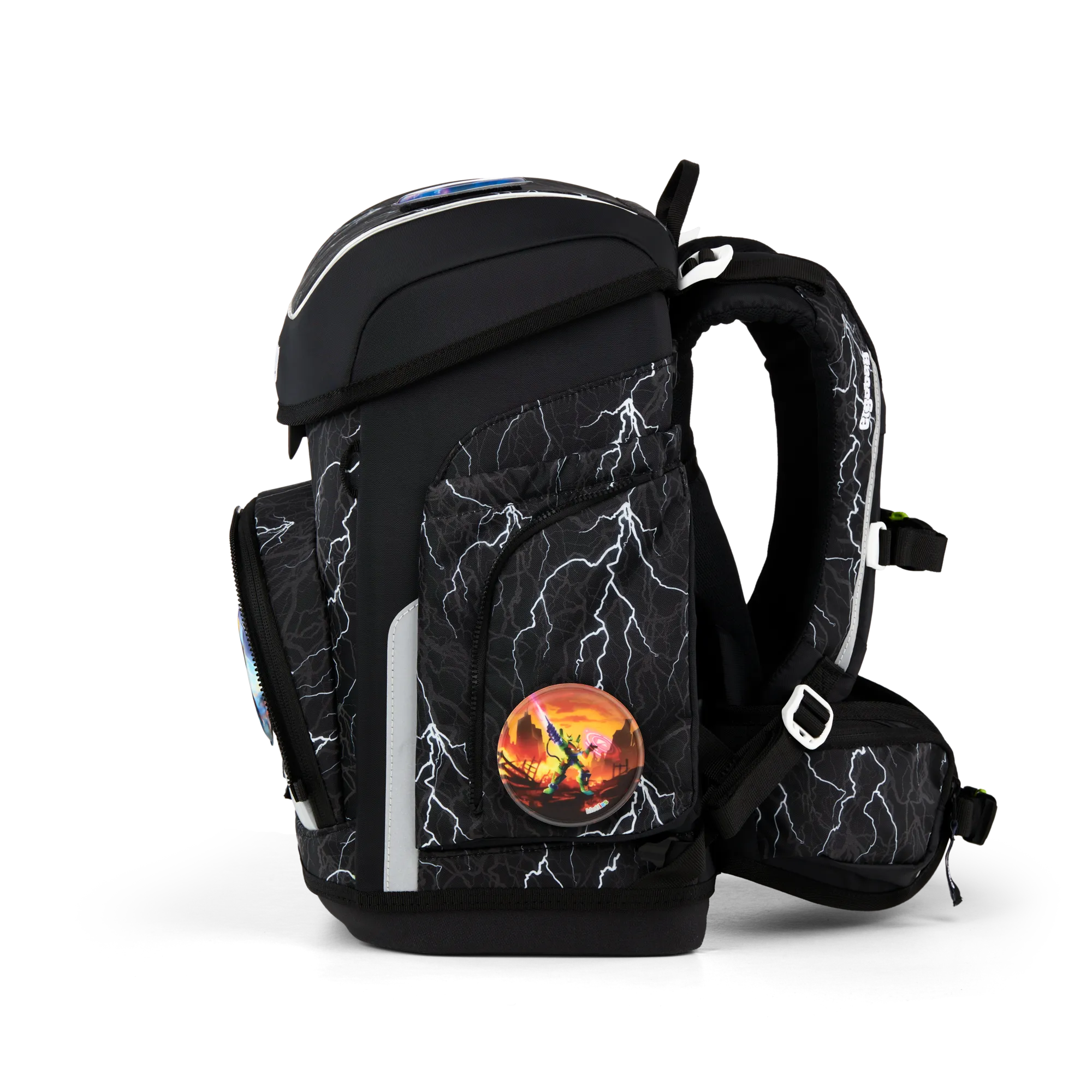 5 -teiliges Set, höhenverstellbares Tragesystem „Your-Size-System“, hoher Tragekomfort durch breite, gepolsterte Beckenflossen, gute Sichtbarkeit durch Reflektoren rundherum, fest angenähte Seitentaschen, Loop zum Anbringen von Hangies, Fahrkartenfach am Beckengurt, Kinderleichtes Öffnen und Schließen des Klappdeckels, Individualisierbar durch Kletties, Hangies, Zippies und Zip-Sets, Größe: 28 x 40 x 25 cm (B/H/T), Gewicht 1100 g, Volumen 20 Liter, Hauptstoff 100% Polyester, aus 39 recycelten PET-Flaschen (0,5 l), Wasser- und schmutzabweisend, Pflegehinweise: Nicht waschen, nicht bleichen, nicht im Trockner trocknen, nicht bügeln, nicht trockenreinigen.