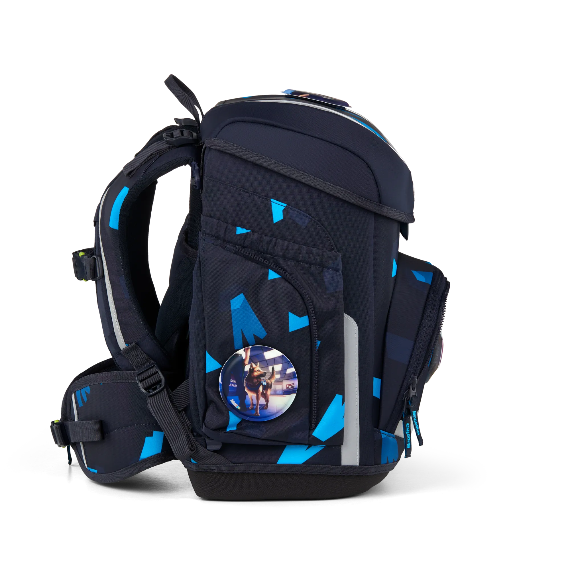 5 -teiliges Set, höhenverstellbares Tragesystem „Your-Size-System“, hoher Tragekomfort durch breite, gepolsterte Beckenflossen, gute Sichtbarkeit durch Reflektoren rundherum, fest angenähte Seitentaschen, Loop zum Anbringen von Hangies, Fahrkartenfach am Beckengurt, Kinderleichtes Öffnen und Schließen des Klappdeckels, Individualisierbar durch Kletties, Hangies, Zippies und Zip-Sets, Größe: 28 x 40 x 25 cm (B/H/T), Gewicht 1100 g, Volumen 20 Liter, Hauptstoff 100% Polyester, aus 39 recycelten PET-Flaschen (0,5 l), Wasser- und schmutzabweisend, Pflegehinweise: Nicht waschen, nicht bleichen, nicht im Trockner trocknen, nicht bügeln, nicht trockenreinigen.