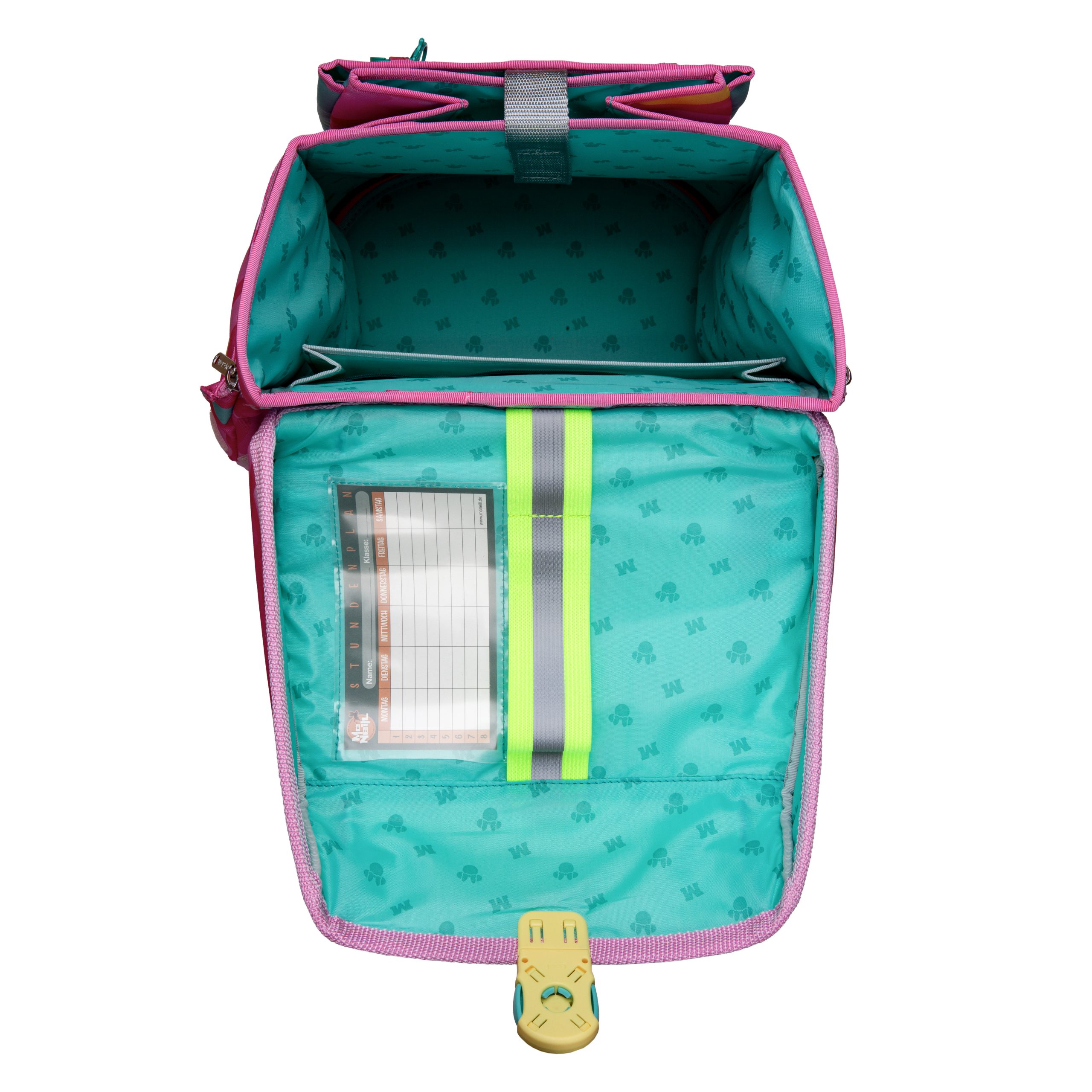 Der neue PERFECTO, mit der perfekten Ausstattung. Mit geräumiger Vortasche, zwei XL-Seiten Taschen mit Reißverschluss in dem alles sicher verpackt ist. Alle unsere Modelle verfügen über das ClickFlex Rückensysten. Das reflektierende Einhand-Magnet-Schloss abgestimmt für die Motorik kleiner Hände, runden die schlanke Optik des Ranzen ab. Das gefüllte Etui findet seinen Platz in der integrierten Befestigung im Überschlag. Die gepolsterten Trageriemen, sorgen für einen soften Tragecomfort. Mit Brust- und Beckengurt und der Turnbeutelbefestigung