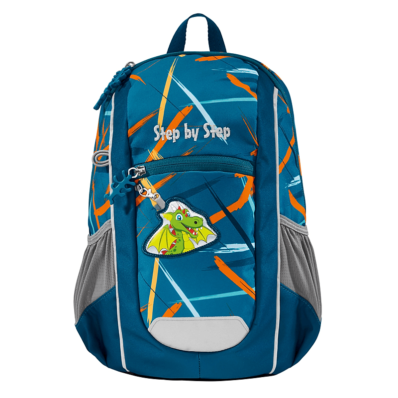 Anatomisch geformte, gepolsterte Schultergurte, ergonomisch geformter Rücken, höhenverstellbarer Brustgurt, Hauptfach im Innenfach, Innenfach für die Trinkflasche, praktische Fronttasche, zwei seitliche Netztaschen, reflektierende Elemente an Fronttasche und Schultergurten, Aufhängeschlaufe, Namens- und Adressfeld im Inneren des Rucksacks, Sicherungsöse für die KIGA MAGS